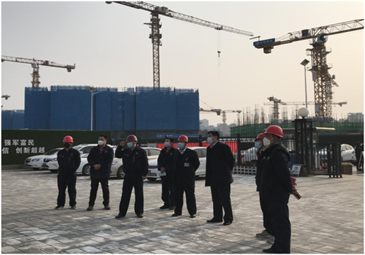 2月28日,中航建设集团党委书记、董事长陈先瑞亲赴集团公司承建的通州区东方厂安置房项目工地,视察疫情防控及项目复工情况。调研中陈董事长强调指出要加强对项目部办公秩序的督察,严格落实防控责任,全力保障复工复产后的防疫安全。通州东方厂安置房项目经理杜景凯、项目书记崔立军等陪同调研。